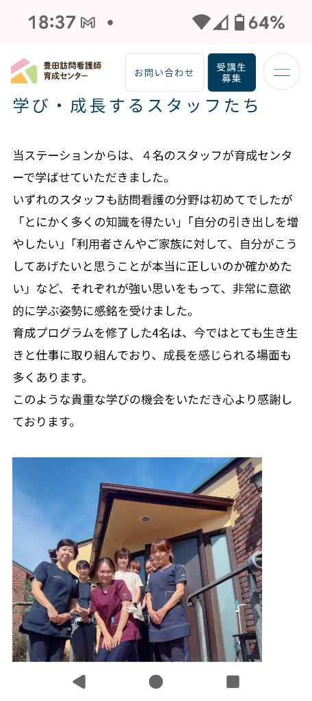 弊社はご自宅で自分らしく生活を送れるようひとりひとりに必要な支援を看護師・理学療法士・作業療法士が対応させていただいております。