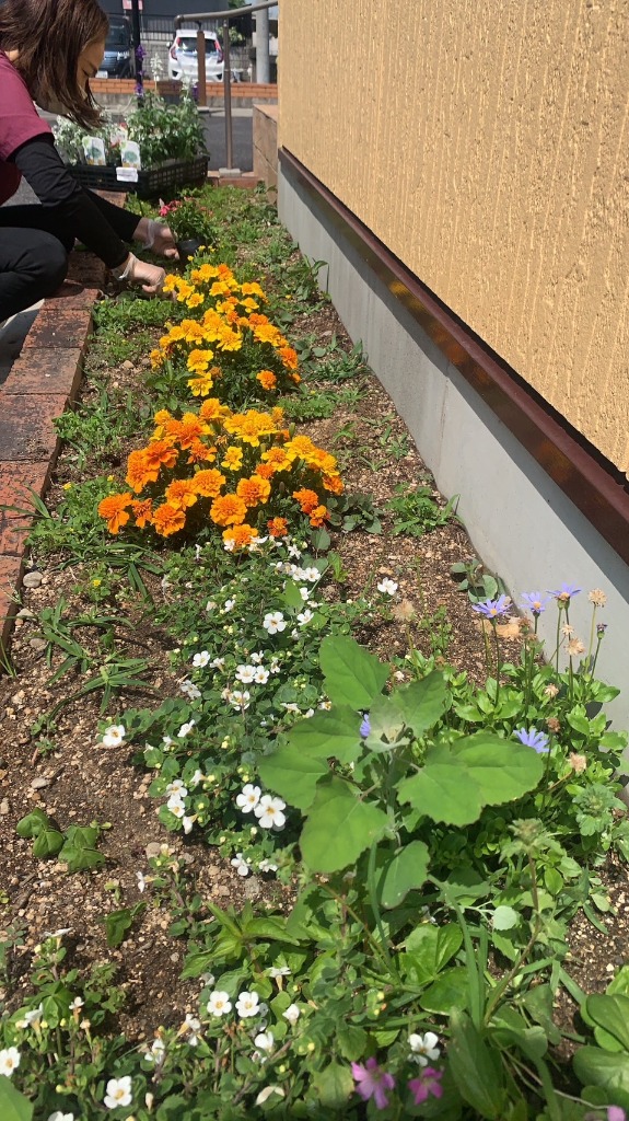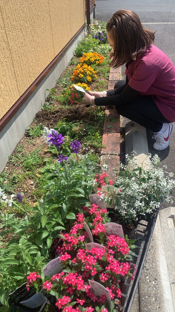 暖かくなり、ステーションのお花の植え替えしてくれました。